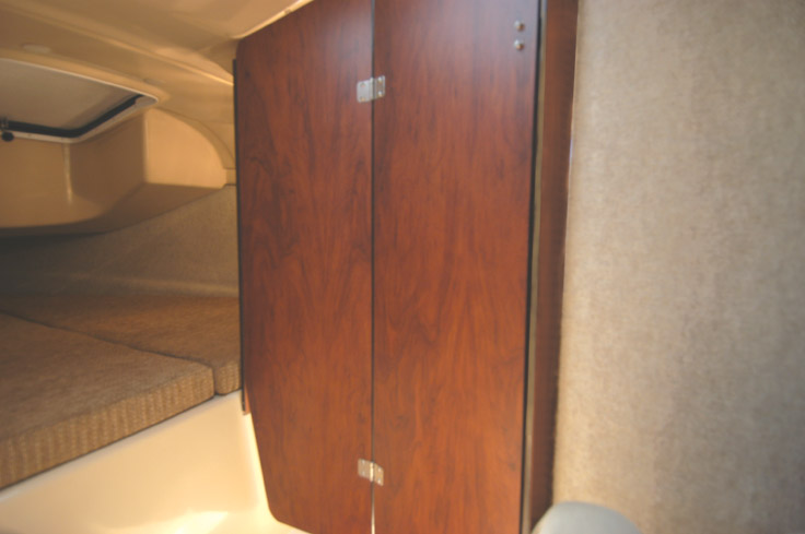 Для интимности предусмотрена хорошая солидная дверь. Петли позволяют складывать ее пополам и в сторону зеркальной переборки. Это намного лучше варианта, который обычно встречается на небольших яхтах, где гальюн размещают под койкой