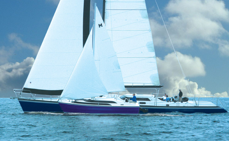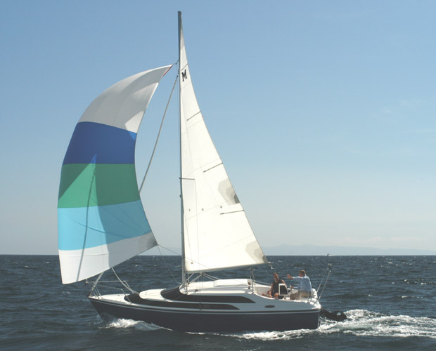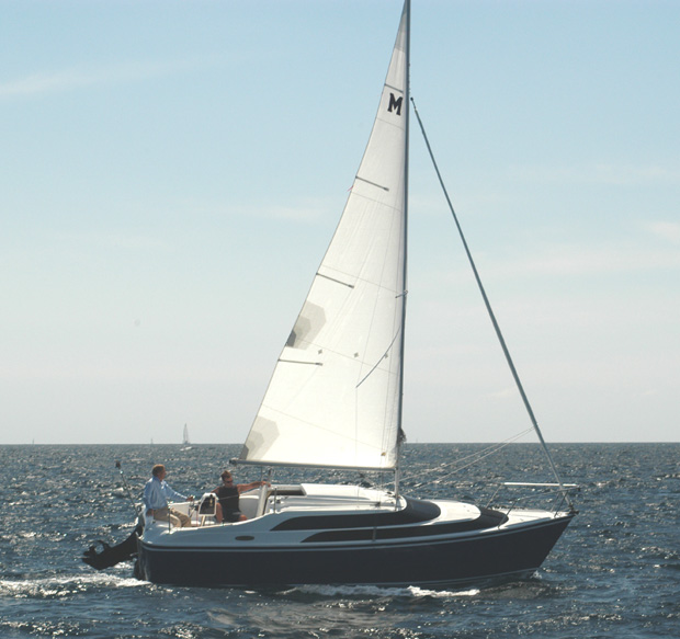 | МакГрегор-26 является одной из наиболее легких в управлении и быстрых трейлерных круизных яхт во всем мире. На этой фотографии показана яхта, идущая под гротом и стакселем. Это вооружение эффективно и простое в управлении. |