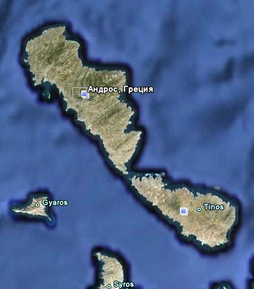 Андрос (греч. Άνδρος) - остров в центральной части Эгейского моря, географически входит в архипелаг Кикладские острова (Киклады), в настоящее находится под управлением республики Греция. Остров лежит в 6 километрах к юго-востоку от более крупного острова Эвбея. Площадь 380 км². Постоянное население - около 10 тысяч жителей. Основное занятие — туризм.