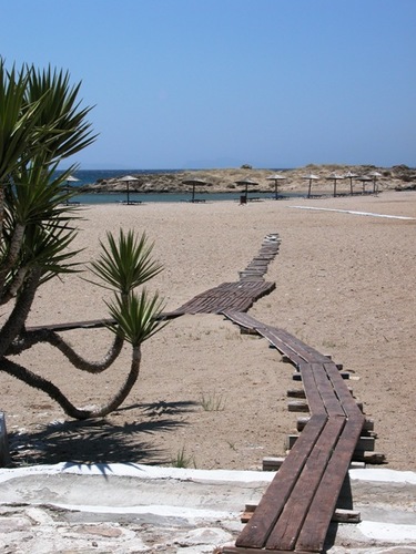 Гористый остров с побережьем, изрезанным небольшими живописными бухтами, с бесчисленным количеством церквушек, оливковыми рощами, виноградниками и свежим прозрачным воздухом. Всё это, в сочетании с кристально чистым морем, прекрасными песчаными пляжами и развитой туристической инфрастуктурой, привлекает массы туристов, особенно молодёжи, и Иос (местные жители называют его Ньё) славится весьма бурной ночной жизнью.