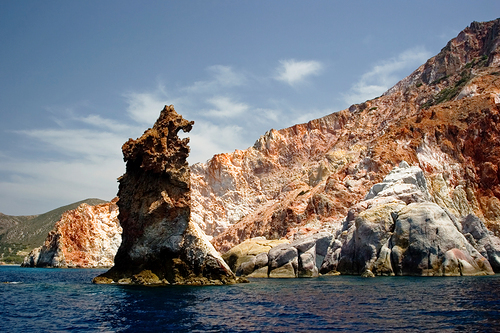 Остров Милос (Мелос) известен всему миру тем, что здесь была найдена знаменитая статуя Афродиты (Венеры), которая украшает ныне Музей Лувра. Остров вулканического происхождения, чем и объясняются восхитительные формы и краски его земли по всему побережью. Здесь сама природа выступала Творцом. Скалы острова стали произведениями скульптуры, разноцветные горные породы, сказочные пещеры, тихие берега и восхитительные песчаные пляжи - живописными картинами. Остров в изобилии обладает горными рудами, здесь находится один из древнейших на Средиземноморье рудников. Милос находится на юго-западной окраине Киклад, к северо-западу от Санторини, к югу от Сифноса и Серифоса. Расстояние от Пирея составляет 87 морских миль. Площадь острова - 151 кв. км, протяженность береговой линии - 125 км, численность населения - 5000 человек. С Пиреем Милос связан рейсами паромов, которые выполняют маршрут Пирей - Кифнос - Серифос - Сифнос - Милос - Кимолос. Коммуникационная связь имеется также между Милосом и другими островами, особенно летом. Кроме того, остров имеет воздушное сообщение с Афинами.