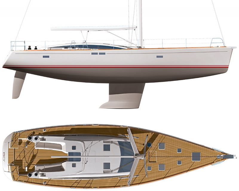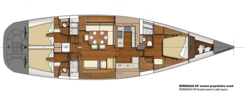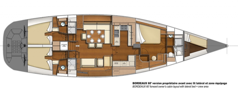 Bordeaux 60 стандарт, Volvo D4-180 ЛС, киль сталь 2.95м с Нос. каютой, кровать сбоку + каюта экип. (2 чел) |