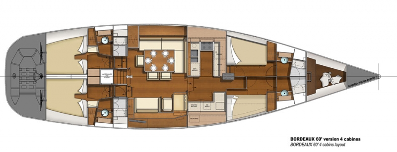 Bordeaux 60 стандарт, Volvo D4-180 ЛС, киль сталь 2.95м с 4 каютами |
