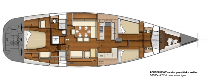 Bordeaux 60 стандарт, Volvo D4-180 ЛС, киль сталь 2.95м с Кормовой каютой, кровать в центре |