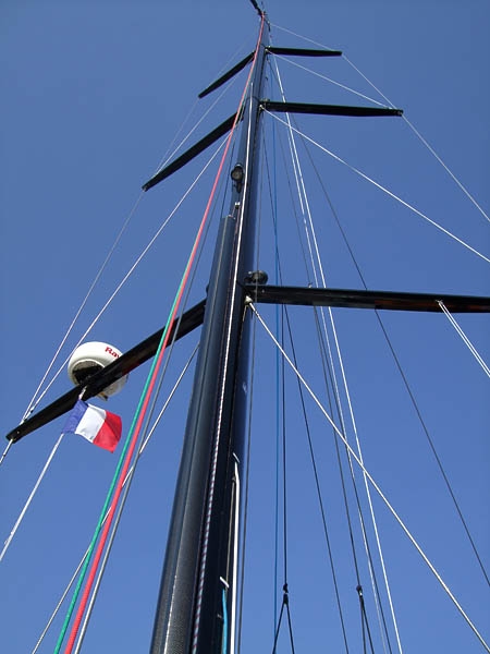 Гоночный рангоут (мачта + 1.50м) : Мачта Карбон фирмы HALL SPARS (крашеная), с таклежем из проволоки |