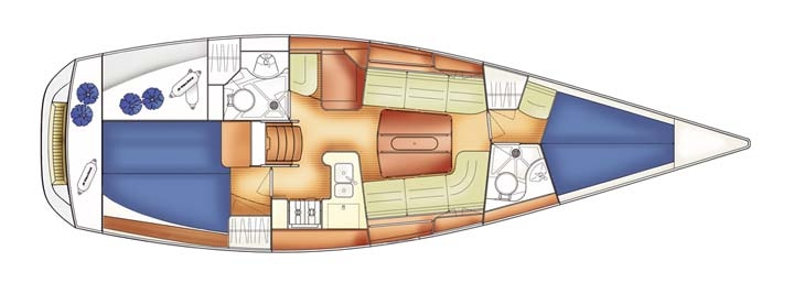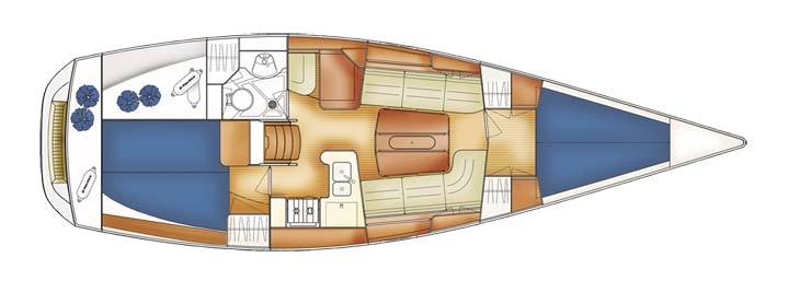 Hull length 11.35 m 37.2 ft LWL 9.79 m 32.1 ft B. MAX 3.48 m 11.4 ft Standard draft 1.98 m 6.5 ft Shallow draft 1.70 m 5.6 ft Sport draft 2.30 m 7.5 ft Ballast – std. keel 2,715 kg 5,985 lbs Displacement – std. keel 6,400 kg 14,109 lbs Engine diesel 21.5 kW 29 HP SAIL AREAS standard Mainsail 43.7 m2 470.3 ft2 Genoa 1 • 135% 42.9 m2 461.8 ft2 Genoa 3 • 108% 34.3 m2 369.4 ft2 Self-tacking Jib 27.2 m2 293.2 ft2 Spinnaker - All purpuse 106.8 m2 1,149.4 ft2