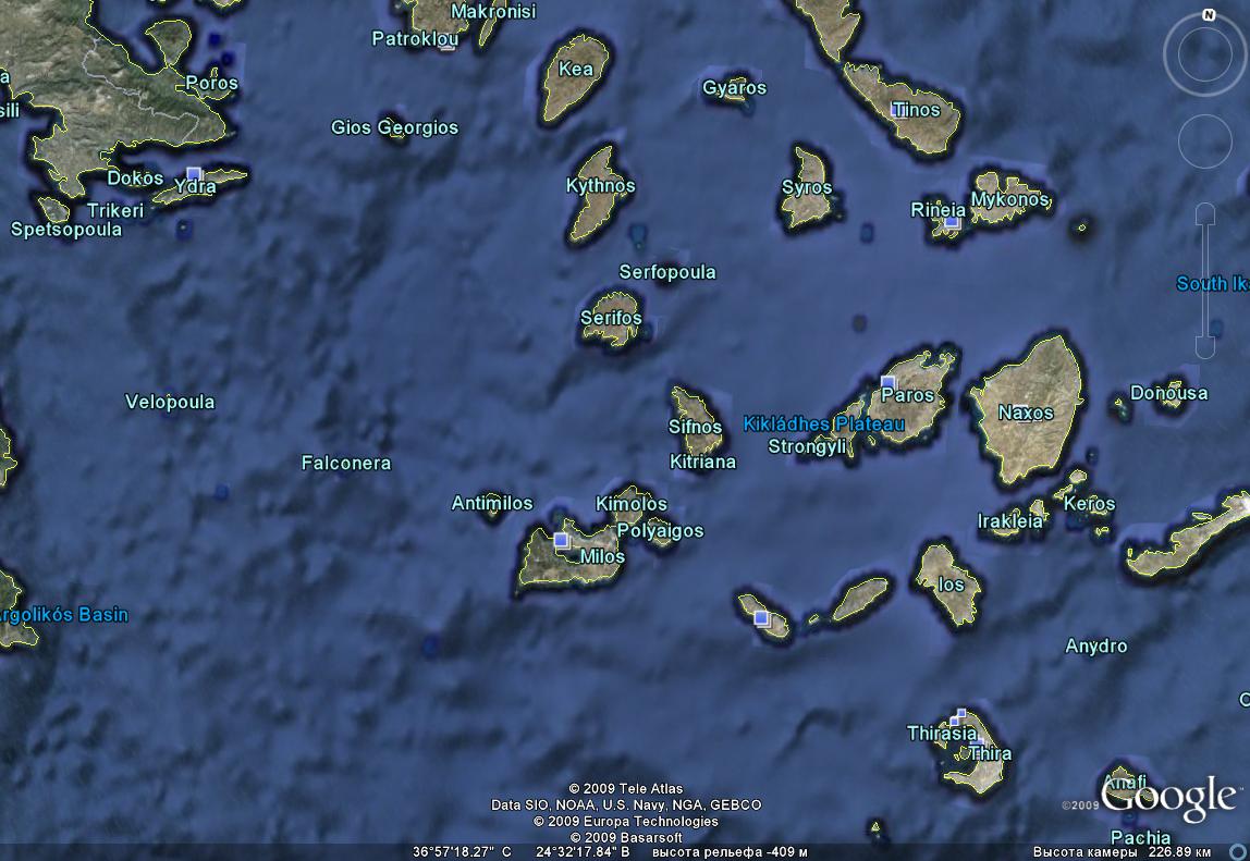 Остров Милос (Мелос) известен всему миру тем, что здесь была найдена знаменитая статуя Афродиты (Венеры), которая украшает ныне Музей Лувра. Остров вулканического происхождения, чем и объясняются восхитительные формы и краски его земли по всему побережью. Здесь сама природа выступала Творцом. Скалы острова стали произведениями скульптуры, разноцветные горные породы, сказочные пещеры, тихие берега и восхитительные песчаные пляжи - живописными картинами. Остров в изобилии обладает горными рудами, здесь находится один из древнейших на Средиземноморье рудников. Милос находится на юго-западной окраине Киклад, к северо-западу от Санторини, к югу от Сифноса и Серифоса. Расстояние от Пирея составляет 87 морских миль. Площадь острова - 151 кв. км, протяженность береговой линии - 125 км, численность населения - 5000 человек. С Пиреем Милос связан рейсами паромов, которые выполняют маршрут Пирей - Кифнос - Серифос - Сифнос - Милос - Кимолос. Коммуникационная связь имеется также между Милосом и другими островами, особенно летом. Кроме того, остров имеет воздушное сообщение с Афинами.